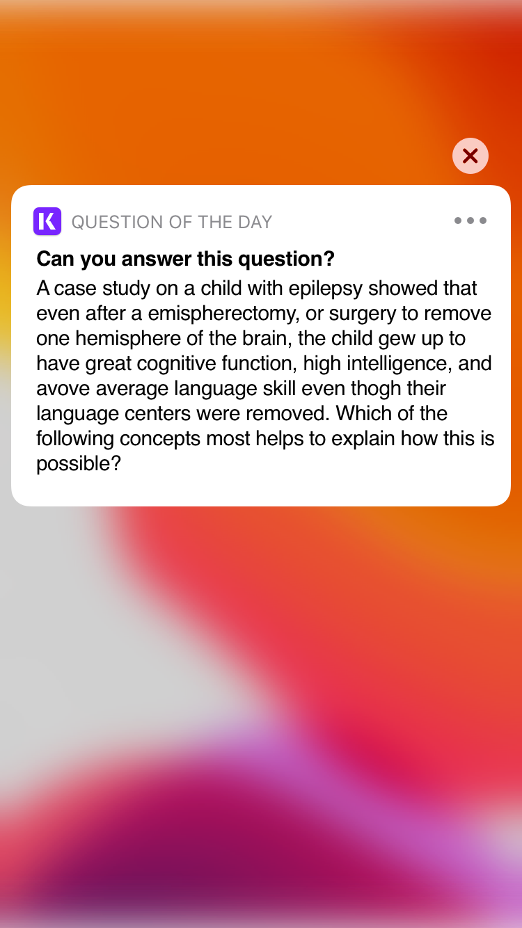Kaplan has an ongoing initiative to use free hooks to drive traffic into their site for paid content. Question of the Day is an iOS app that provides a free test question to a student each day every 24 hours.