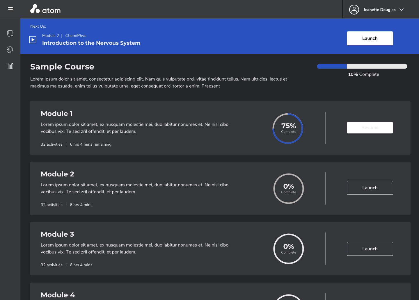Activity library of all the learning items available to the student to study independently in any order they like.